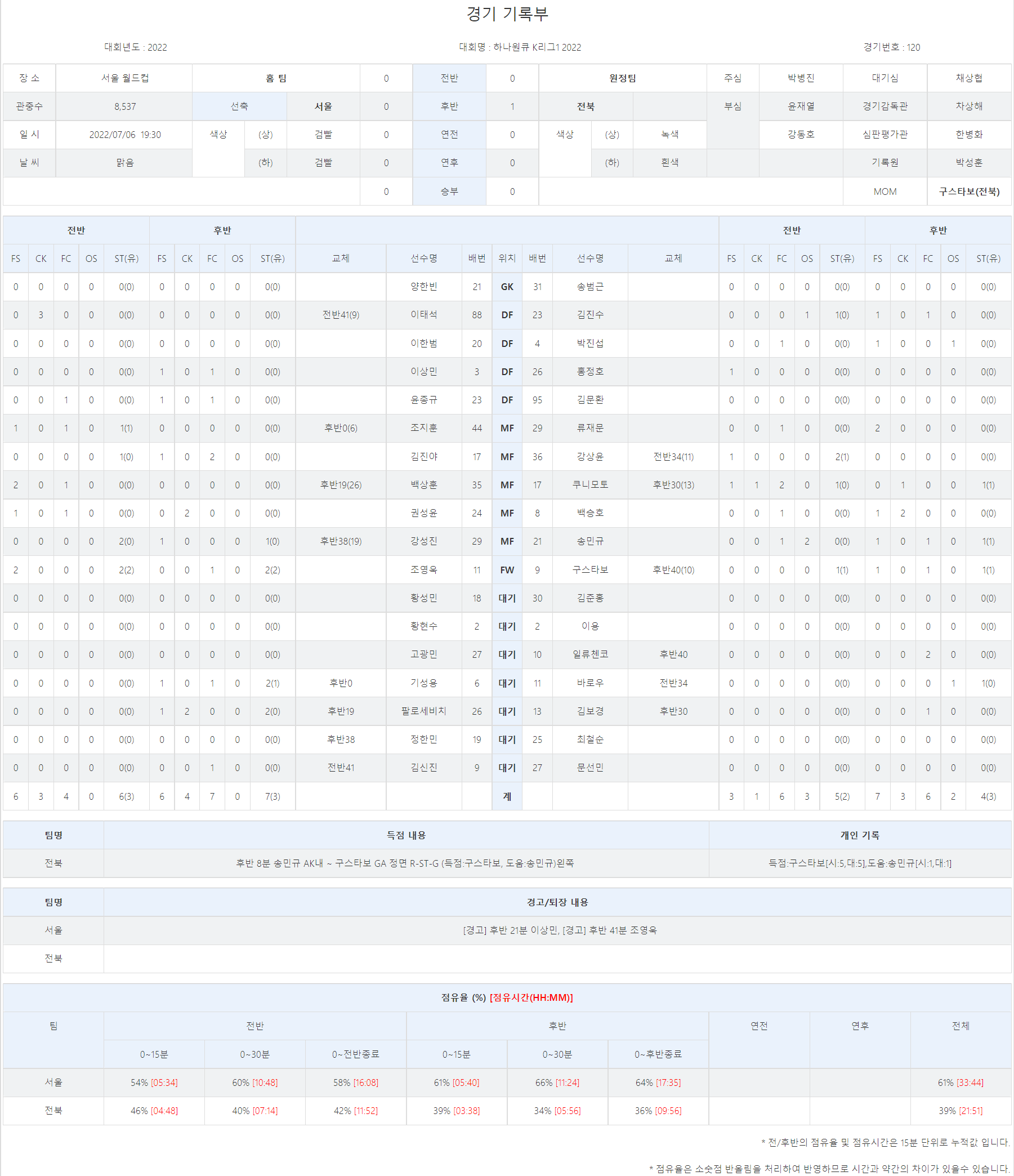 K리그1 R20 2022.07.06(수) 19:30 H