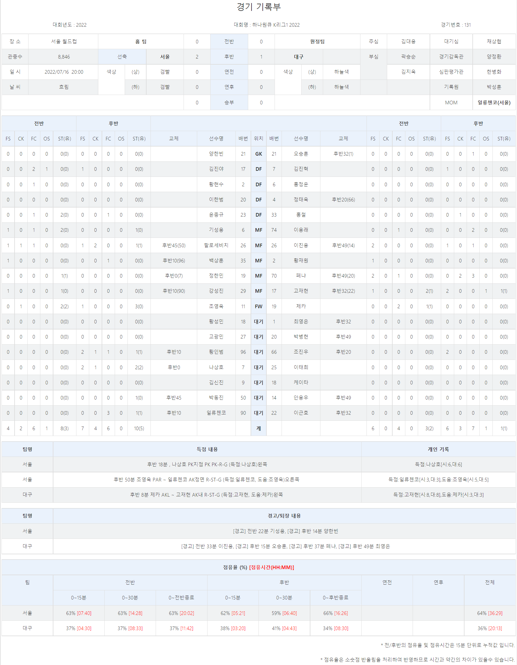K리그1 R22 2022.07.16(토) 20:00 H