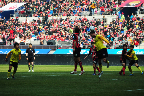 데얀의 절묘한 백헤딩 선제골