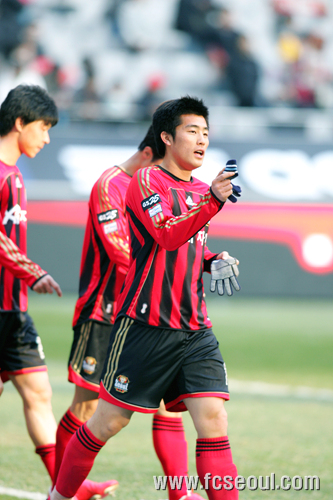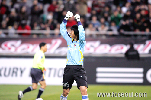 경기가 시작되기전 선수들을 격려하기 위해 나온 이완경 FC서울 사장