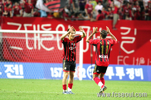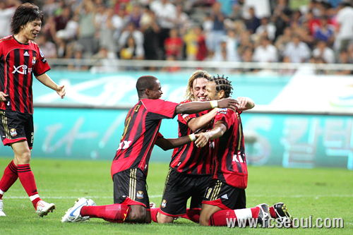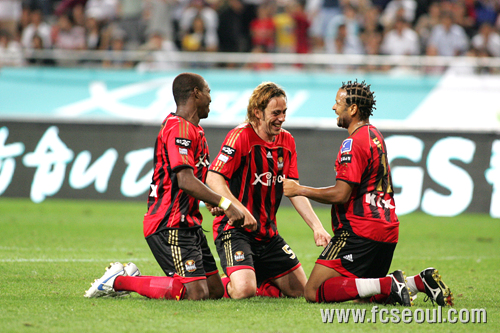 세리머니하는 외국인 선수 3인방 두두, 히칼도, 아디