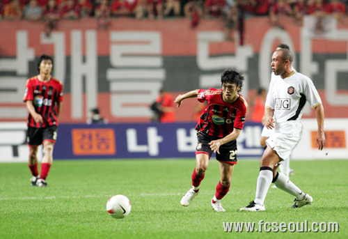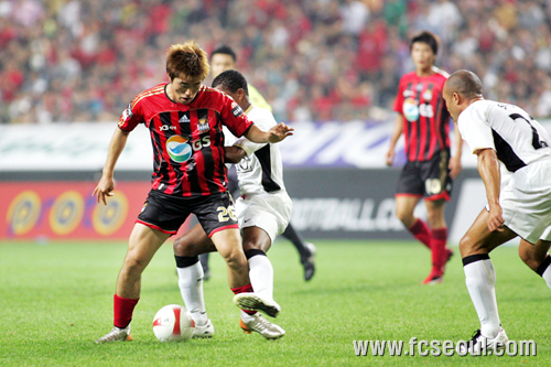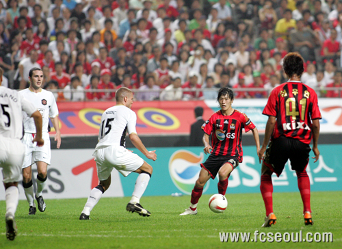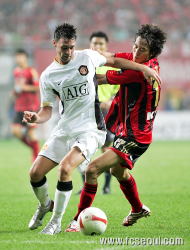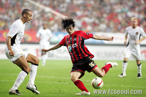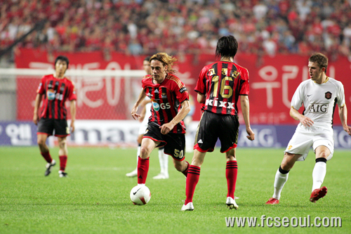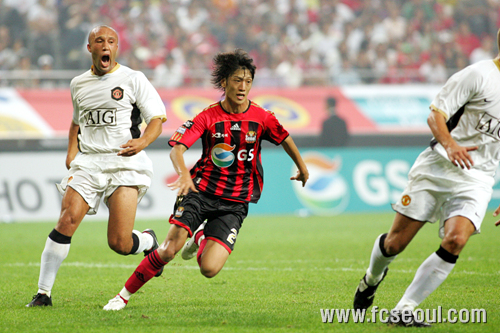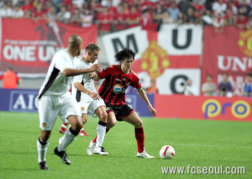 맨유 선수들을 상대로 볼을 지키는 이상협