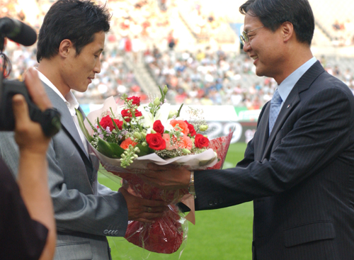 이장수 감독, 한웅수 단장과 함께선 이을용 선수