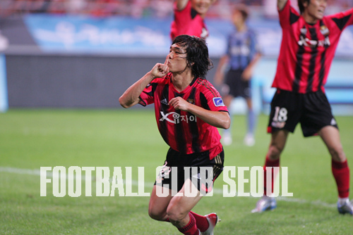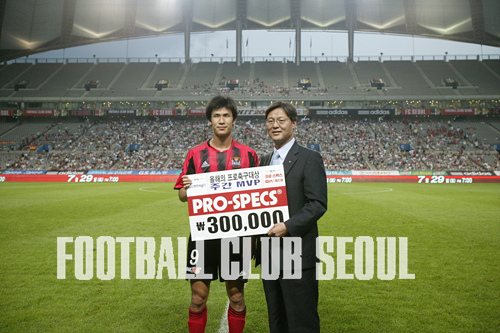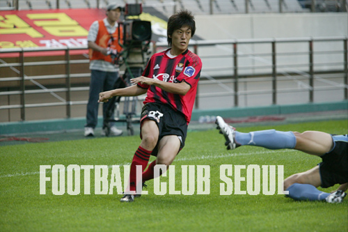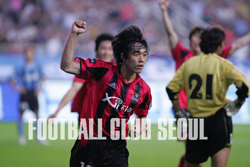 환한 표정으로 포즈를 취하고 있는 이을용 선수